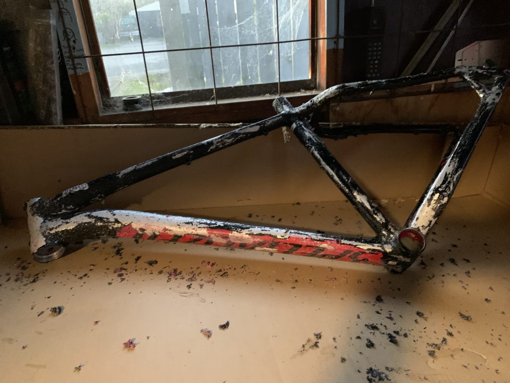 Using Paint Stripper a plastic scraper the paint came off the alloy frame quickly, and then a metal pick to get the paint out of the welds.