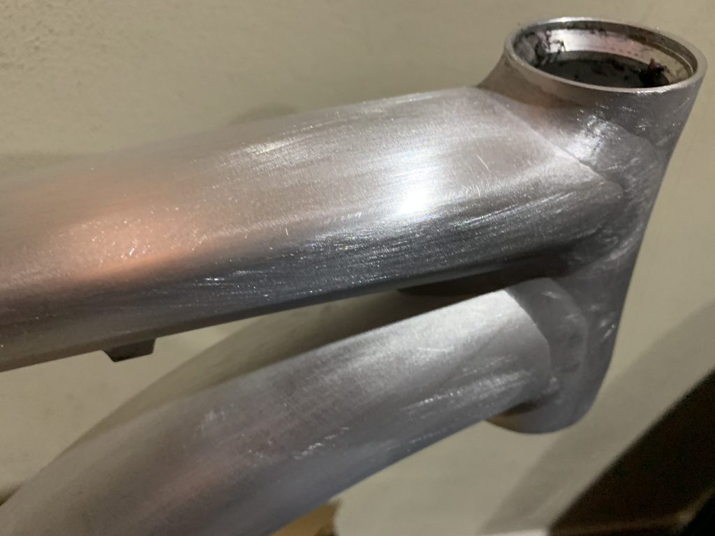 I took the fork into my local bike shop, who gave me guidance on how far I should sand the fork to and what it should look like at the end.