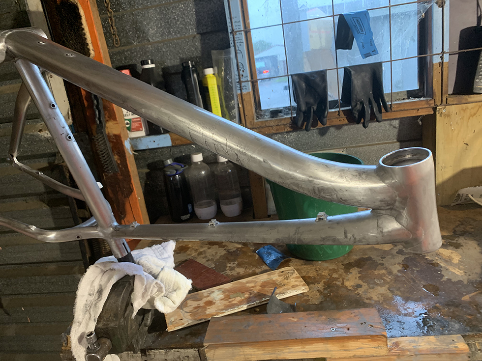 Wet & Dry 1000 Grit + Polishing with Autosol, takes the frame to shinny land.