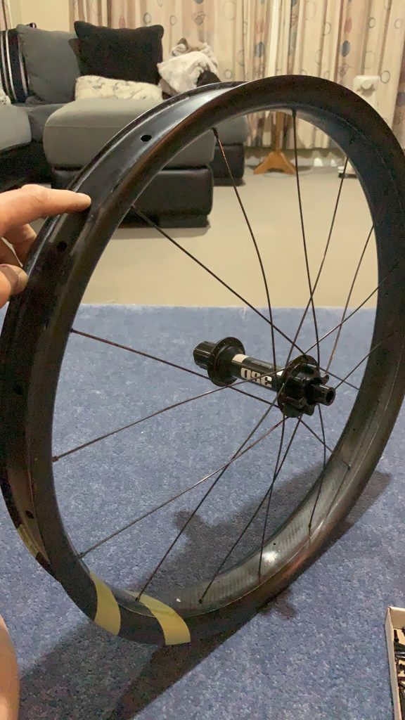 Then I stumbled across a set of second-hand carbon fiber Rims for sale; one was damaged, the other was in perfect condition. So I bought them and had one of the Rims repaired