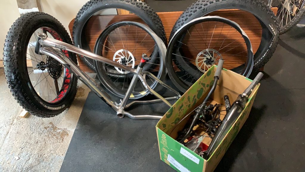 My 2014 FatBoy bike used to be a Bike Shop Demo, Alloy Frame, SRAM X0/X7 Group Set and came with a rigid carbon fork, nothing fancy, except for the grip shifts for the front and rear derailleur (which I thought I would hate)