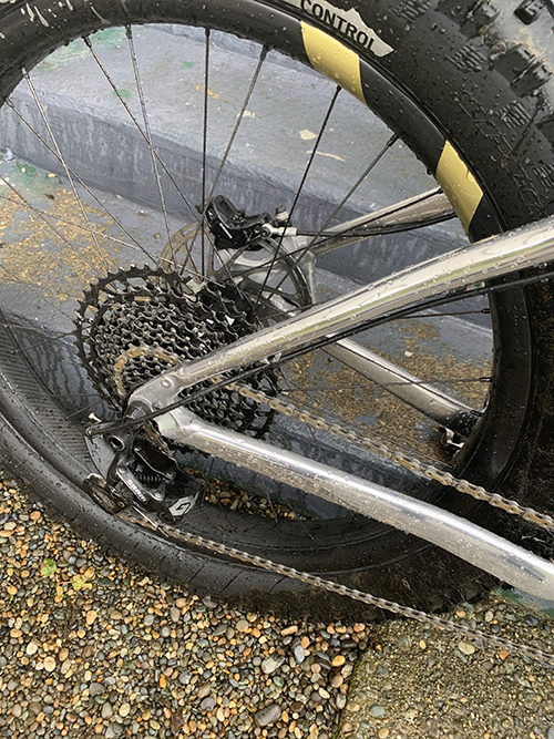 The groupset changed to a 1x, 34 Crank, and 12 Speed Sram 11 – 50 Cassette, running a GX derailleur and a gold chain (yup Gold, cause I like to be different)