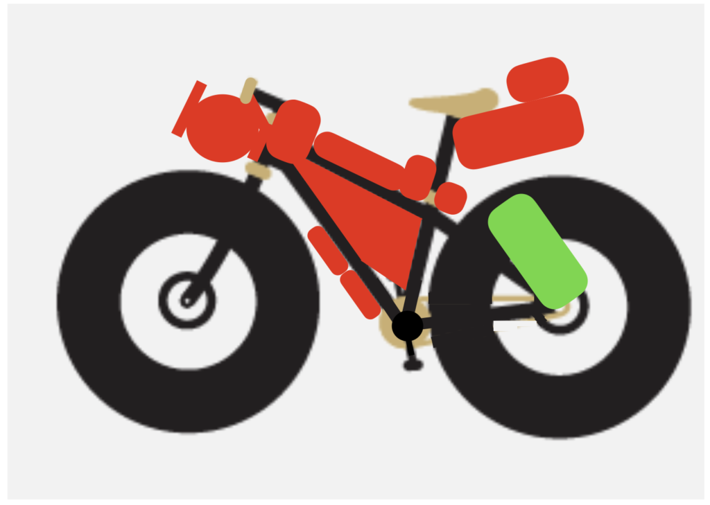 | Bag: | Backcountry Apidura long top tube bag, 1.8L fully waterproof. | |