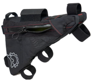| I ideally should have a waterproof frame bag, but this is the one I bought as I was getting into Bikepacking, this model is not waterproof. I did spray with Water Repellent Spray. You can get waterproof custom-made frame bags from Paper Roads Aotearoa to fit your bike frame. I generally keep the bulkier / heavy / longer items like tent poles, tent pegs, stake hammer, and bike pump in my frame bag. I also need quick access to some other stuff like Riding Vesting and Winter gloves when riding. The frame bag is perfect for tools, snacks, or heavy items. It depends on how your setup works for you. |